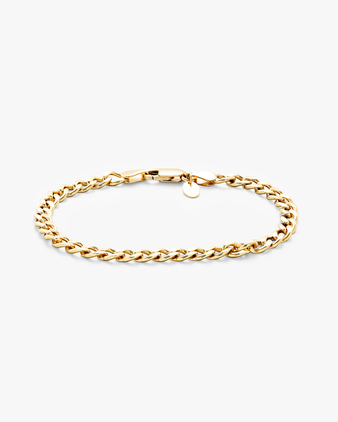 Curb Armbånd Large er et høykvalitets smykke, som er laget med 100% resirkulert 925 sterling sølv, belagt med 14 karat gull.